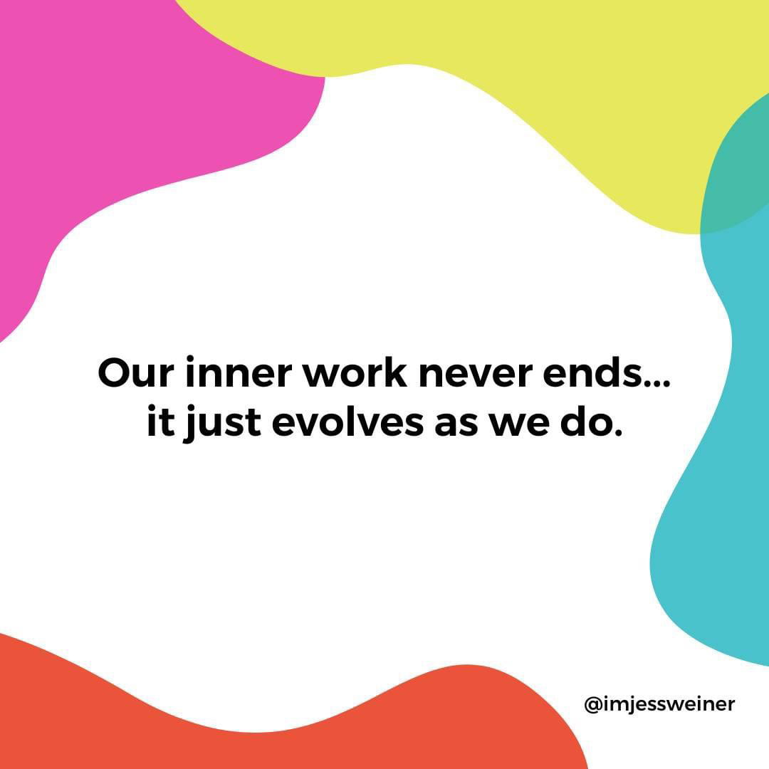 Quote Graphic: Our inner work never ends… it just evolves as we do. — Jess Weiner